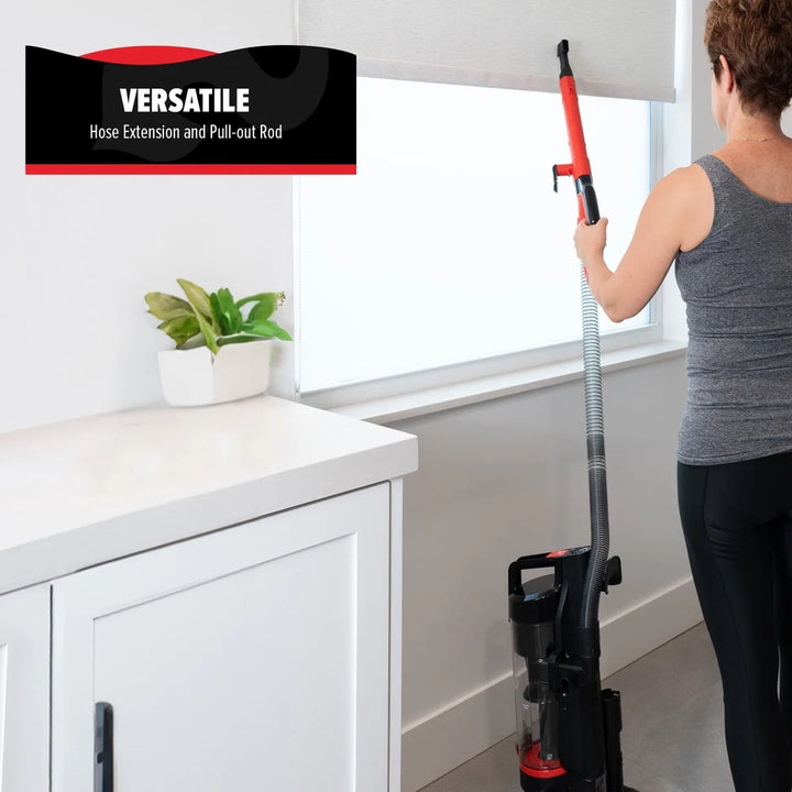 BAGLESS UPRIGHT: ovable dust bin canister with large capacity and easy empty feature